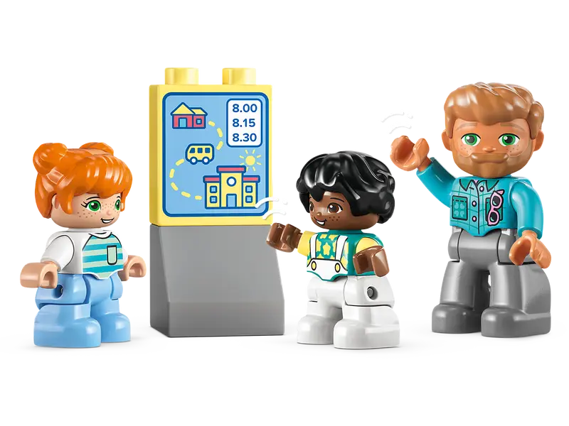 A LEGO DUPLO szettekhez különféle karakterek is tartoznak, így a kicsik eljátszhatják, hogy barátokat szereznek. Fejlesztik a finom motoros-készségeiket, miközben felnyitják a busz tetejét és belehelyezik a figurákat. A figurák egy kerítés mögött várják, hogy megálljon a busz, ami segít az óvodásoknak megtanulni, hogyan kell viselkedni a forgalomban. Mint minden LEGO DUPLO óvodásoknak készült játék, ez a szett is végtelen szórakozást, önkifejezést és az örömteli felfedezés élményét nyújtja a kisgyermekeknek.