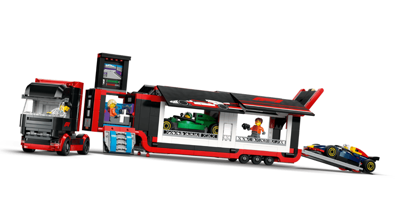 • F1-es szállítókamiont tartalmazó LEGO játékkészlet – A Formula 1 ifjú rajongói imádni fogják a 8 éves kortól ajánlott, prémium LEGO City F1-es kamion, RB20 és AMR24 F1-es autókkal játékkészletet